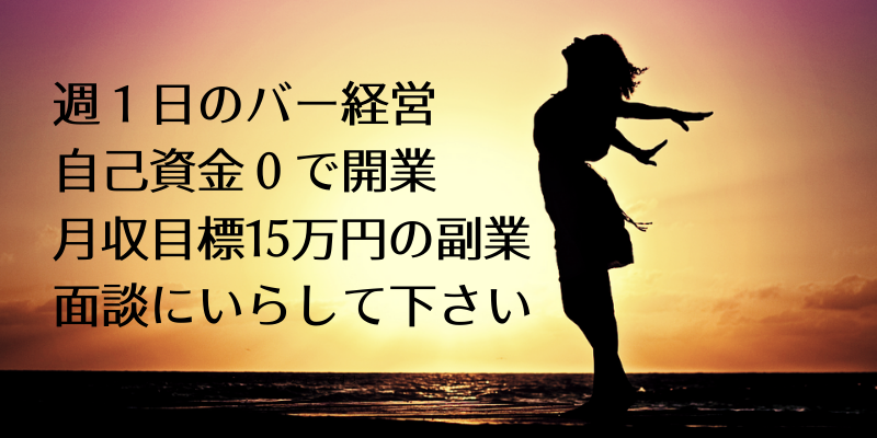 日本初の自己資金 0 円 で毎週1日(月に4日または5日)、決めた曜日のバーオーナーができます。