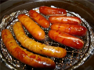 熊五郎の手作り燻製。桜のチップを使った香り高い燻製です。ソーセージの種類は気まぐれです。